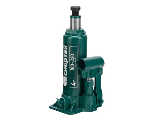 Домкрат гидравлический бутылочный Сибртех 50802 предназначен для подъема грузов массой до 4 т на высоту от 180 до 320 мм. Не требует больших усилий от пользователя и значительно облегчает рабочий процесс. Домкрат будет полезен при проведении техобслуживания машины в автосервисе или гараже.