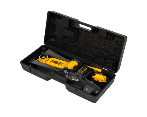 - Удобное хранение и транспортировка — домкрат поставляется в прочном пластиковом кейсе.