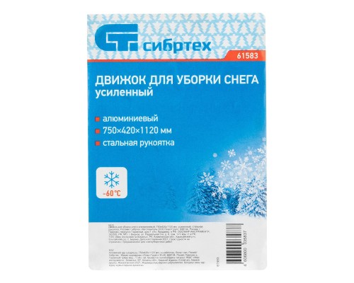 Усиленный алюминиевый движок для уборки снега Сибртех 61583 размером 750 х 420 х 1120 мм, со стальной рукояткой, предназначен для очищения территории от снежных заносов. Рабочая часть шириной 750 мм облегчает расчищение большой площади. П-образная рукоятка позволяет управлять движком двумя руками, что снижает нагрузку на спину. Облегченная конструкция уменьшает усталость при длительной работе. Движок подойдет для уборки придомовой территории, очистки от снега дачного участка и проезжих дорог.