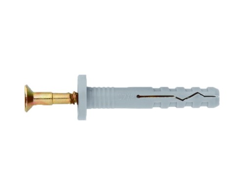 - Простой монтаж — гвоздевой дюбель забивают молотком, специальные ребра обеспечивают прочную фиксацию в материале, саморезы типоразмера PZ2 можно закручивать и откручивать обычной отверткой без использования шуруповерта