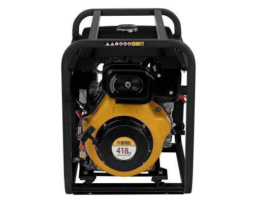 - Мобильность — к генератору можно приобрести транспортировочный комплект Denzel 94906 для перемещения по рабочей площадке.