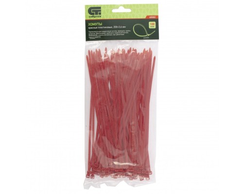 Красные пластиковые хомуты Сибртех 45502, 200 х 3,6 мм, 100 шт. в упаковке, используются для стяжки кабелей, закрепления трубок, шлангов, рекламных конструкций, а также для упаковки различных предметов. Пригодятся во время прокладки электрических и локальных вычислительных сетей, ремонта компьютерной техники, оформлении торговых стендов, комплектовании товара, будут также полезны дома, на даче и в гараже.