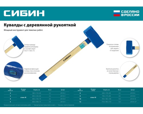 - Голова кувалды правильной формы и соответствует ГОСТ 11401-75. Деревянная рукоятка.