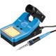 Паяльная станция применяется для паяльных работ, требующих бережную пайку при определенной температуре. Станция особенно удобна при пайке электронных плат и других мелких деталей, поскольку поддерживает заданную температуру и не нуждается в отключении от электросети во время работы. Температура устанавливается с помощью кнопок, отвечающих за увеличение/уменьшение температуры. На ЖК-дисплее отображается процесс нагревания/остывания и температура жала паяльника. Выключатель обеспечивает удобство эксплуатации паяльной станции. В станции предусмотрен отсек для очистки жала от припоя. Подставка, поставляемая в комплекте, удобна при выполнении паяльных работ и обеспечивает безопасность.