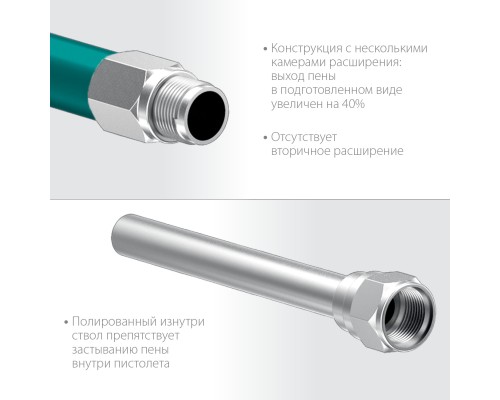 - Полированный изнутри ствол препятствует застыванию пены внутри пистолета,