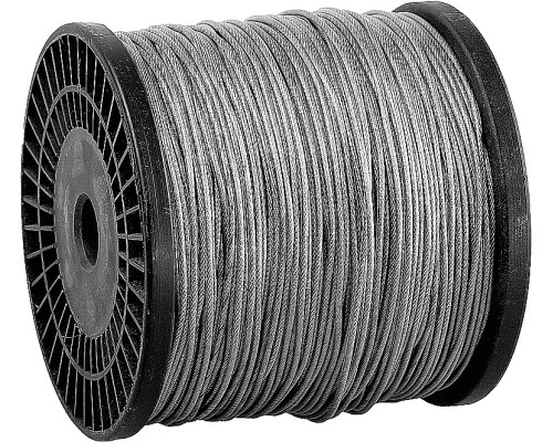 5Тросы общего назначения изготовлены оцинкованной проволоки. Тросы различаются по диаметру и типу поперечного сечения. Соответствуют стандарту DIN 3055, имеют структуру 6х7 (6 прядей, обвитых вокруг сердечника, по 7 проволок в каждой пряди), дополнительно защищены оплеткой из ПВХ.