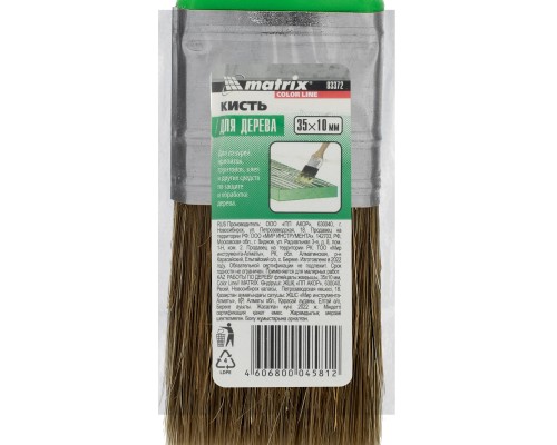 Флейцевая кисть Matrix Color Line «РАБОТЫ ПО ДЕРЕВУ» 83372 шириной 35 мм и толщиной 10 мм используется с любыми видами пропиток, клеев, грунтовок и других деревообрабатывающих составов. Комбинированная щетина расщеплена на кончиках и содержит натуральные волокна, поэтому кисть хорошо впитывает и отдает лакокрасочные материалы. Искусственный ворс предохраняет щетину от деформации при использовании водных составов. Высокая плотность щетины обеспечивает хорошую продуктивность работ.
