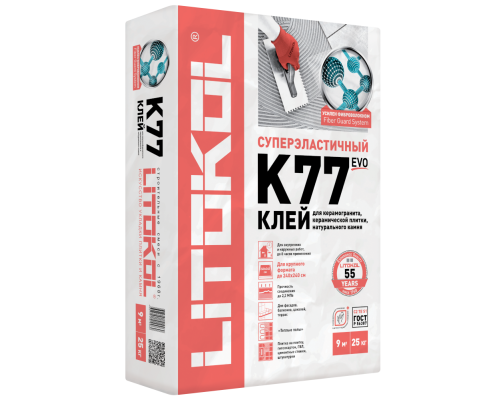 SUPERFLEX K77 — клеевая смесь, предназначенная для укладки любого типа плитки из керамогранита, керамики и натурального влагоустойчивого камня, в том числе крупного формата размером до 240х240 см. Для внутренних и наружных работ.