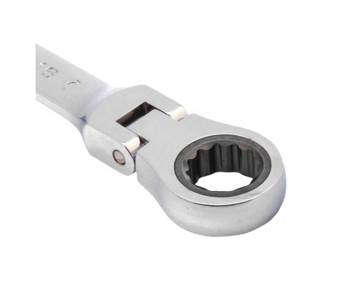 - Удобная работа в труднодоступных местах — храповый механизм на 72 зуба обеспечивает плавное вращение (шаг трещотки составляет 5°), а шарнир позволяет поворачивать рабочую часть под углом.