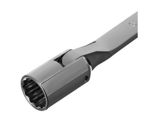 - Шарнирное крепление головок позволяет передавать крутящий момент под углом, что облегчает работу в труднодоступных местах.