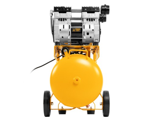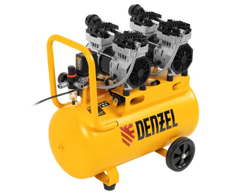 Безмасляный малошумный компрессор Denzel DLS 1500/50 58027 мощностью 1500 (2 х 750) Вт, объемом ресивера 50 л и производительностью 260 л/мин предназначен для обеспечения пневмоинструмента сжатым воздухом, подаваемым под давлением до 8 бар. Позволяет подключить пневматический заклепочник, дрель и т. д. Оптимален для работы с краскопультом и для продувки электронных компонентов, т. к. в сжатом воздухе отсутствуют частицы масла. Компрессор пригодится в мастерской, гараже, на строительной площадке.