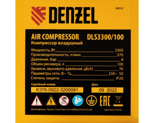 Безмасляный малошумный компрессор Denzel DLS 3300/100 58032 с блоком управления, мощностью 3300 (3 х 1100) Вт, объемом ресивера 100 л и производительностью 570 л/мин предназначен для обеспечения пневмоинструмента сжатым воздухом, подаваемым под давлением до 8 бар. Позволяет подключить пневматический заклепочник, дрель, шлифмашину, ударный гайковерт и т. д. Оптимален для работы с краскопультом и для продувки электронных компонентов, т. к. в сжатом воздухе отсутствуют частицы масла. Компрессор пригодится в мастерской, гараже, на строительной площадке.