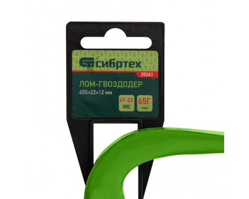 Лом-гвоздодер Сибртех 25241 размером 450 х 22 х 12 мм позволяет удалять гвозди, а также срывать доски с пола, разбирать ящики, демонтировать заборы, вагонку со стен или шифер с крыши. Может служить рычагом для поднимания грузов, поскольку прямоугольно-овальный профиль значительно усиливает его на момент излома. Инструмент подходит для профессионального и бытового применения.