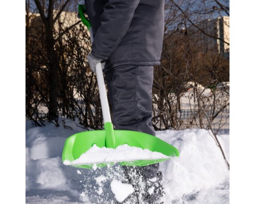 Пластиковая лопата для уборки снега Сибртех PROFI 61492 размером 415 х 445 х 1500 мм, с алюминиевым черенком, используется для расчистки территории в зимний период. Благодаря алюминиевой накладке на кромке ковша инструмент эффективно справляется даже с плотным слежавшимся снегом и настом. Инструмент пригодится для уборки придомовой территории, пространства перед гаражом или садового участка.