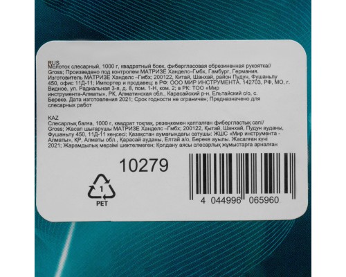 Слесарный молоток Gross 10279 с квадратным бойком весом 1000 г и фибергласовой обрезиненной рукояткой предназначен для работы с металлическими заготовками, забивания гвоздей, штырей, дюбелей и других крепежей. Подходит для манипуляций в узких местах благодаря заостренной форме бойка. Молоток рекомендован для профессионального и домашнего применения.