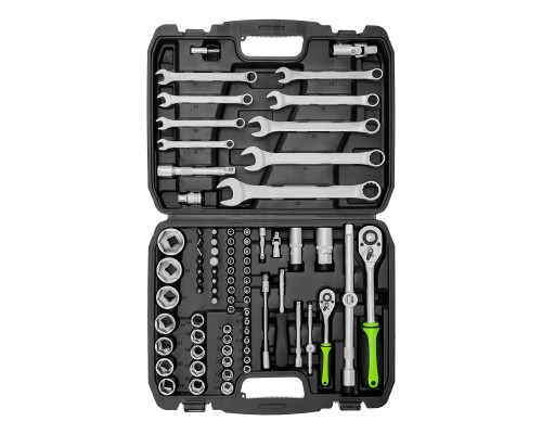 Набор инструмента Сибртех 13500, состоящий из 83 предметов с присоединительными размерами 1/2"" и 1/4"", предназначен для ремонта и обслуживания автомобилей, также пригодится в быту. Имеющиеся в комплекте насадки рассчитаны на крепеж с различными типами профилей и шлицев, включая HEX и TORX. Набор будет полезен профессиональным мастерам и автолюбителям.