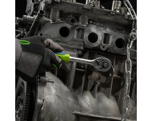 - Эргономичность — двухкомпонентные рукоятки трещоточных ключей удобно ложатся в руку.