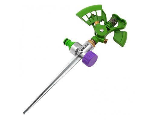 - Штырь в форме пики крепко фиксируется в почве, и разбрызгиватель не упадет во время эксплуатации.