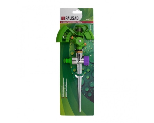 Импульсный металлический двухсторонний разбрызгиватель Palisad 65413 используется для кругового полива. Максимальная орошаемая площадь составляет 500 кв.м. Дальность распыления можно регулировать в диапазоне 8-13 м. Устройство предназначено для автоматического полива растений на озелененных территориях — садовых участках, в скверах и парках.
