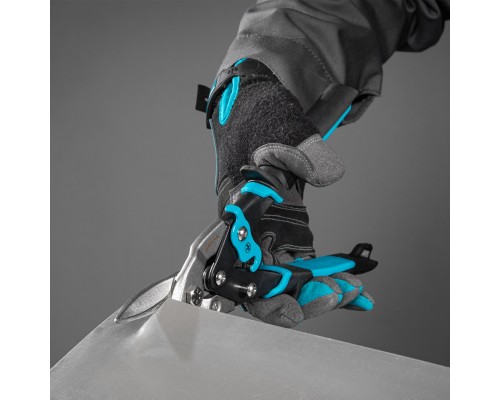 Ножницы по металлу Gross PIRANHA 78325 длиной 250 мм, из стали CrMo, с двухкомпонентными рукоятками, предназначены для точного прямого реза по листовым заготовкам. Двойной рычажный механизм уменьшает нагрузку на руку при резке толстого металла. Ножницы справляются с холоднокатаной сталью толщиной до 1,2 мм и с нержавеющей сталью толщиной до 0,7 мм. Инструмент используется для проведения профессиональных слесарных работ.