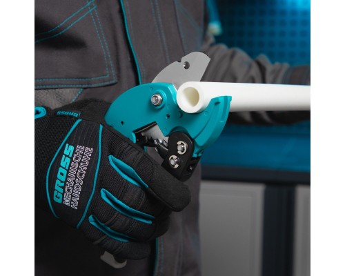 Ножницы для резки изделий из ПВХ Gross 78420 с двухкомпонентными рукоятками и рабочим столиком используются для разрезания резиновых шлангов и пластиковых заготовок диаметром до 36 мм — труб, плинтусов, профилей, галтелей, планок, реек. Трапециевидное полотно с двумя рабочими кромками обеспечивает высокую производительность инструмента. Стол, устанавливаемый на опорную поверхность ножниц, позволяет резать плоские предметы. Инструмент рекомендован для профессионального применения.