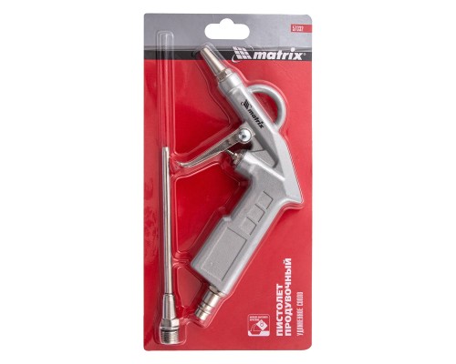 Пистолет продувочный Matrix 57332 оснащен удлиненным металлическим соплом длиной 135 мм, поэтому идеально подходит для применения в труднодоступных и узких местах. Работает под давлением до 8 бар, быстро удаляет пыль, грязь, опилки, стружку, строительный мусор не только из маленьких отверстий, но и с больших поверхностей, из трубопроводов и технологических каналов. Работа на сжатом воздухе обеспечивает высокую пожаробезопасность и позволяет осуществлять продувку изделий и поверхностей во влажных помещениях.
