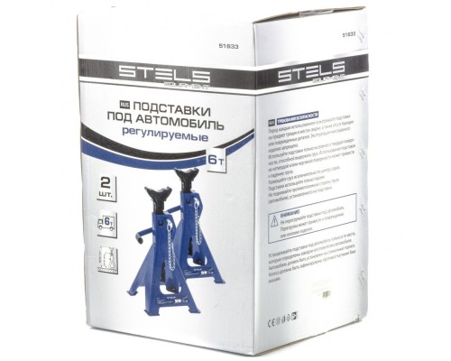 Регулируемые подставки под автомобиль Stels 51633 грузоподъемностью 6 т, с высотой подъема 415-605 мм, 2 шт. в комплекте, используются в качестве дополнительной поддержки во время ремонта автотранспорта. Подставки удерживают автомобиль на необходимой высоте при помощи регулируемых штоков с зубчатым механизмом фиксации. Каждая стойка снабжена страховочным штифтом, что исключает риск случайного опускания штока. Подставки будут полезны для профессионального и самостоятельного авторемонта.