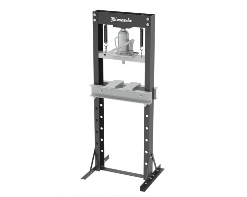 Гидравлический пресс Matrix 523205 размером 640 х 540 х 1500 мм, воздействующий на детали с усилием 20 т, поставляется комплектом из 2 частей. Используется для запрессовки и выпрессовки различных деталей, необходимых для ремонта автомобилей. Изготовлен из толстого прочного металла и имеет простую разборную конструкцию из верхней и нижней балок, стоек, станин и гидравлического бутылочного домкрата. Пресс подойдет для самостоятельного использования в гараже.