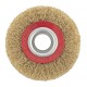 Плоская щетка Matrix 74659 диаметром 125 мм, с щетиной из латунированной витой проволоки, устанавливается на точило с посадочным размером 20 мм. Рекомендуемая скорость вращения — не более 6000 об/мин. Витая проволока позволяет в щадящем режиме зачистить тонкий слой ржавчины и лакокрасочных покрытий, удалить различные загрязнения с небольших или хрупких деталей. Благодаря плоской форме щетка подходит для обработки труднодоступных мест.