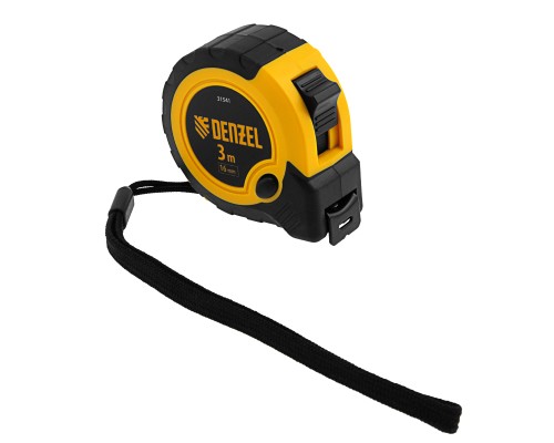 Рулетка Denzel 31541 в двухкомпонентном корпусе, с кнопкой-паузой, с полотном шириной 16 мм и длиной 3 м, используется для измерения расстояний и размеров предметов. Стальная лента с эмалевым покрытием и защитной пластиной в месте крепления зацепа рассчитана на долгий срок службы. Рулетка будет полезна во время строительства и ремонта, а также пригодится в быту.