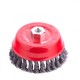 Щетка Matrix «Чашка» 74627 диаметром 125 мм, с присоединительной резьбой М14, с щетиной из крученой проволоки диаметром 0,5 мм, устанавливается на УШМ, поддерживающую работу со скоростью 6500 об/мин. Изделие предназначено для грубой (черновой) обработки поверхностей и подходит для удаления загрязнений, снятия толстого слоя ржавчины, ЛКМ, зачистки сварных швов.