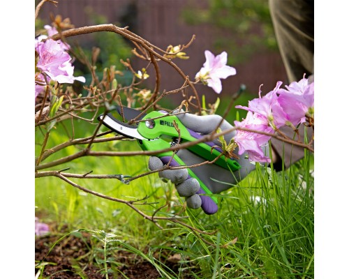- Удобная обрезка — рифленая поверхность наковальни обеспечивает надежную фиксацию веток, в том числе гладких.