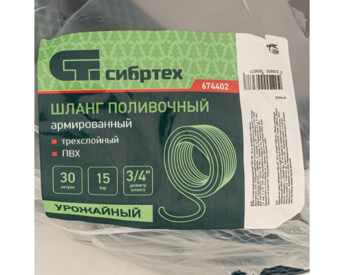 Армированный поливочный шланг из ПВХ Сибртех «Урожайный» 674402 длиной 30 м и диаметром 3/4" пригодится для быстрого орошения растений на дачном участке. Оптимален для использования на территории небольшой площади, может применяться совместно с любыми элементами оросительных систем Palisad и Palisad LUXE.