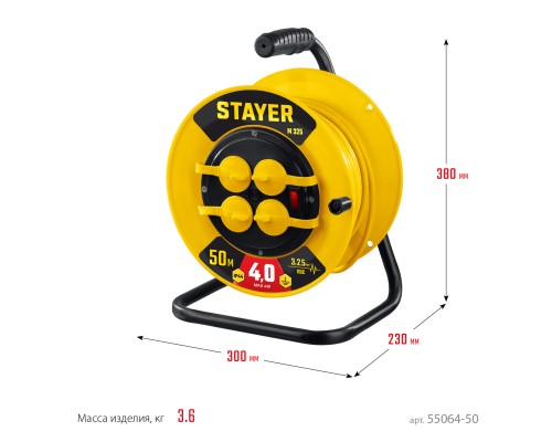 50Удлинитель на катушке может применяться как в закрытых помещениях, так и на улице. Высокопрочный кабель устойчив к резким перепадам температуры.