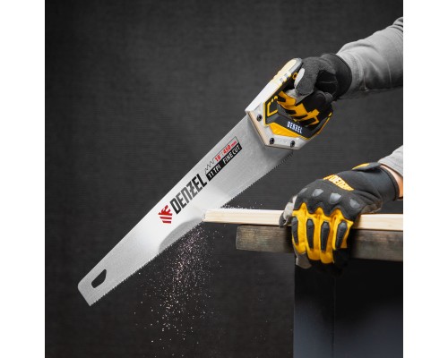 Ножовка по дереву DENZEL предназначена для столярных работ- распиловка заготовок из древесины, ДСП, ДВП, МДФ, ламината, а также из ПВХ (труба, панель, короб). Может производить продольный и поперечный распил. Мелкие зубья с шагом 11 TPI позволяют выполнять более точный и чистый рез. Ножовка обладает высокой производительностью благодаря агрессивной трехгранной, многоступенчатой заточке зубьев, которая обеспечивает идеальную геометрию и высокую остроту зуба.