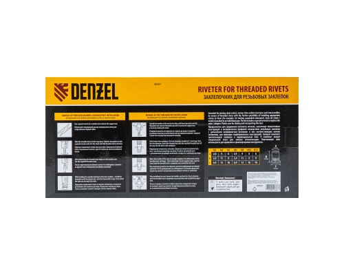 Заклепочник двуручный Denzel 40501 длиной 255 мм предназначен для создания неразъемных соединений при помощи резьбовых заклепок из алюминия, стали или нержавеющей стали (М3, М4, М5, М6, М8, М10, М12). Позволяет прочно фиксировать листовые заготовки, металлический профиль и легкие конструкции. Для каждого типоразмера заклепок предусмотрена соответствующая головка. Инструмент применяется при проведении строительных, монтажных работ, будет полезен дома, в гараже или на даче.