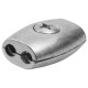 Для формирования петель на концах троса. Используются на тросах без оплетки ПВХ (если трос имеет оплетку, ее необходимо снять перед установкой зажима). Свободный конец троса закладывается в зажим (конец троса должен выходить из зажима на расстояние не менее 1/2 диаметра троса). Далее в петлю троса закладывается коуш, после которого трос помещается в зажим с другой стороны отверстия. Сверху помещается прижимная крышка, которую небходимо крепко зафиксировать с помощью винта. Свободный конец троса рекомендуется обмотать изолентой для предотвращения разматывания троса после установки. Перед использованием необходимо убедиться, что винты на зажимах закручены полностью.