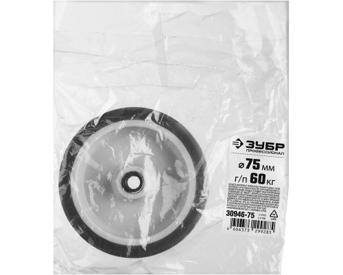 ЗУБР d 75 мм, г/п 60 кг, резина/полипропилен, термопластичное неповоротное колесо, Профессионал (30946-75-F)