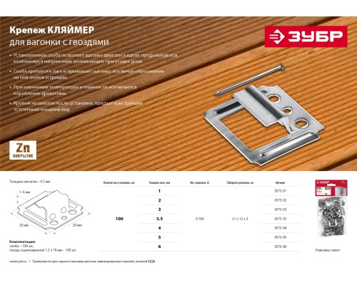 ЗУБР Кляймер, 6 мм, цинк, 100 шт, крепеж для вагонки (3075-06)