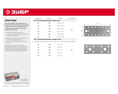 ЗУБР КП-2.0, 100 x 35 x 2 мм, цинк, крепежная пластина (310236-100-35)