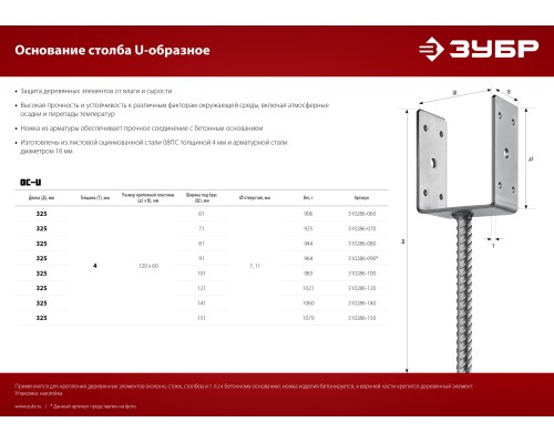 Для крепления деревянных элементов (колонн, стоек, столбов и т.п.) к бетонному основанию. Ножка изделия бетонируется, к верхней части крепится деревянный элемент.