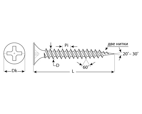 • Резьба с частым шагом разработана для крепления гипсокартона к металлическим профилям.
