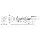 Саморезы для крепления гипсоволоконных листов (ГВЛ) изготовлены из стального прутка с высоким содержанием углерода. Контроль за геометрией самореза начинается с калибровки прутка и заканчивается тщательной проверкой размеров готового изделия. Нормативная твердость стали достигается термической обработкой. Поверхностная твердость 550-800HV, твердость в сердцевине 240-425HV. Саморезы легко вкручиваются обычным шуруповертом или отверткой с крестообразным шлицем PH2 (DIN). Предварительное сверление в скрепляемых материалах не требуется. Геометрические размеры: диаметр головки (Dk) - 6.9-7.3мм, диаметр высокой резьбы (D) - 4.05-4.25мм, диаметр низкой резьбы (D1) - 2.9-3.2мм, шаг резьбы (Pi) - 1.59мм.