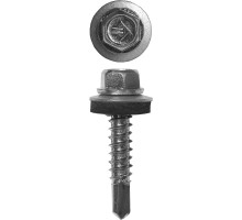 Кровельные саморезы изготовлены из стального прутка с высоким содержанием углерода. Контроль за геометрией самореза начинается с калибровки прутка и заканчивается тщательной проверкой размеров готового изделия. Нормативная твердость стали достигается термической обработкой. Поверхностная твердость мин. 560HV, твердость в сердцевине 240-425HV. Шайба с прокладкой EPDM толщиной 2мм плотно прижимается к кровельному материалу, герметизируя просверленное отверстие. Шестигранная головка выдерживает большой крутящий момент и значительно облегчает вкручивание самореза.