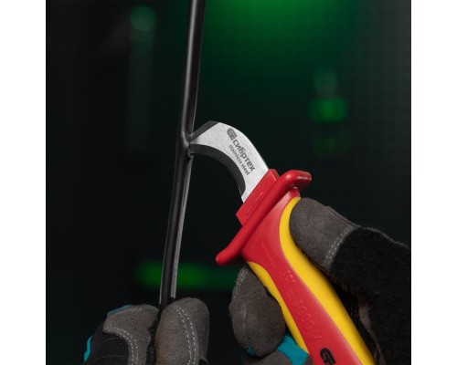 - Нож полностью безопасен и соответствует нормам ГОСТ при проведении работ с электрикой под напряжением до 1000 В.