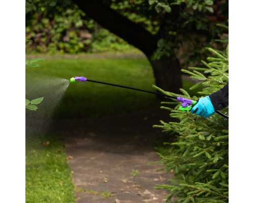 - Удобная обработка участков большой площади — благодаря фиксатору курка опрыскиватель может работать в режиме непрерывного полива.