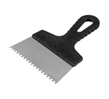 Шпатель Sparta 85480 шириной 150 мм, из нержавеющей стали, с пластмассовой ручкой и зубьями 10 х 10 мм, применяется для равномерного нанесения клея при укладке мелкоформатной плитки, мозаики и т.д. Квадратные зубья облегчают нанесение клеевого состава, позволяя ровно и экономно распределять его по поверхности. Зубья размером 10 х 10 мм рассчитаны на плитку площадью 900-2500 см2.